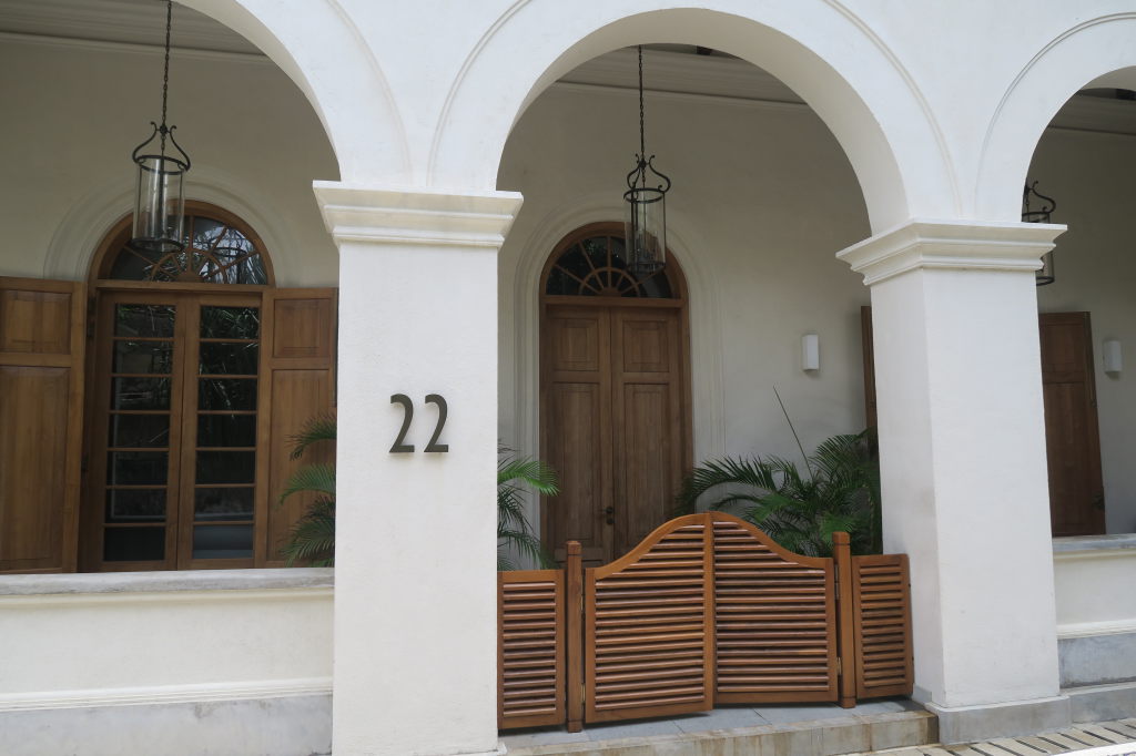 Un petit hotel devant la Stupa. La stupa est ainsi entourée de petites structures qui contenaient avant une icône