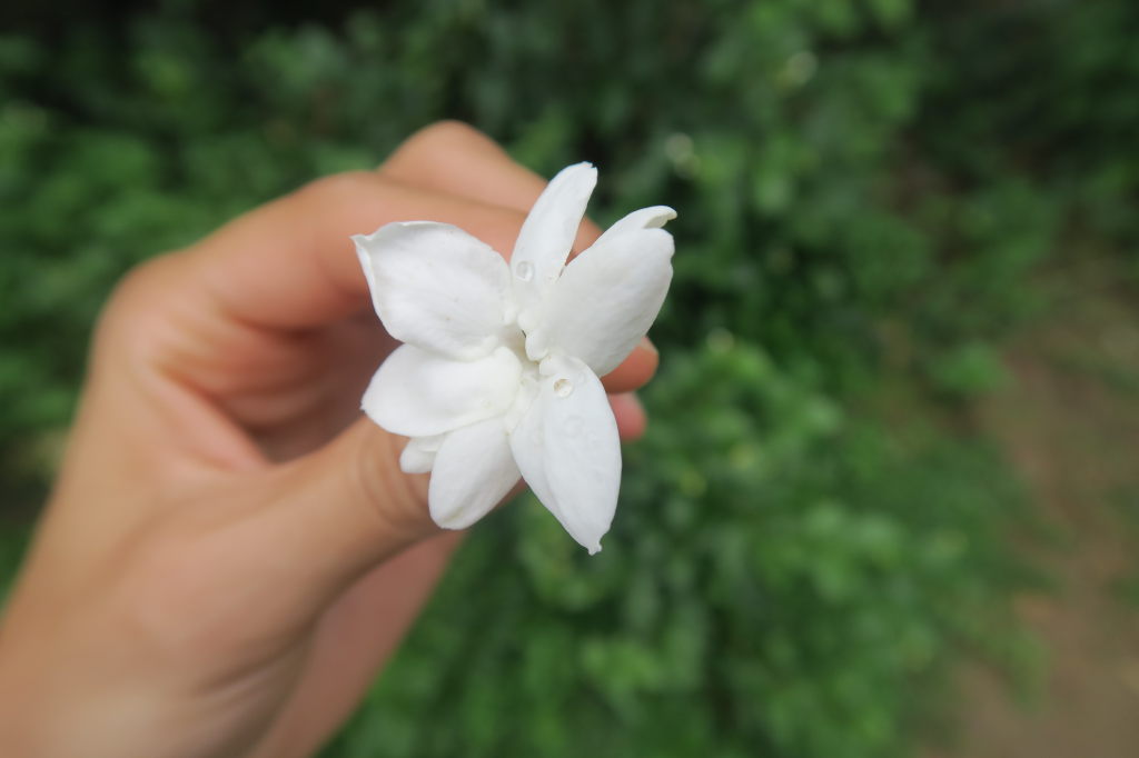 Feuille de thé blanc. La ceuillette se fait sans toucher la feuille, avec ciseaux et bol. Une récolte quotidienne de thé blanc est d’environ 30 grammes, comparé à 20 à 30 kilo pour du thé noir standard