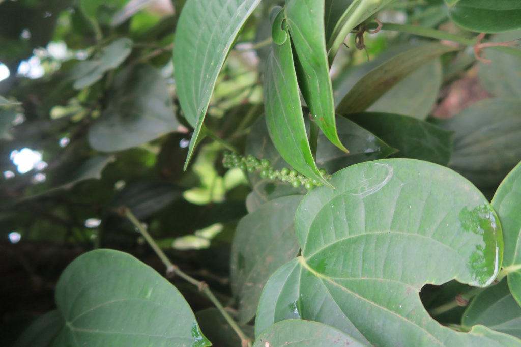Elise croque une feuille de cannelier, dont l’écorce produit la cannelle