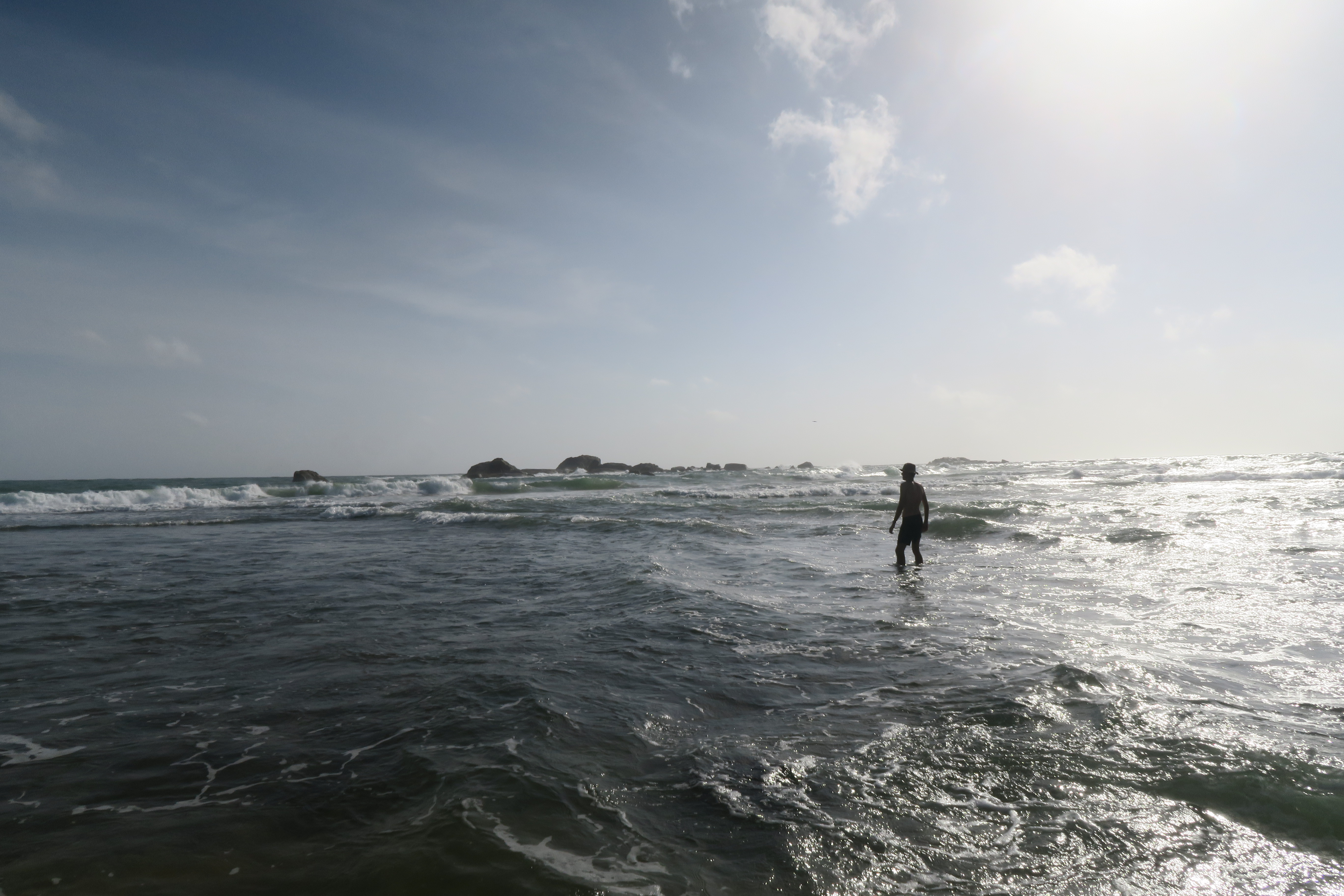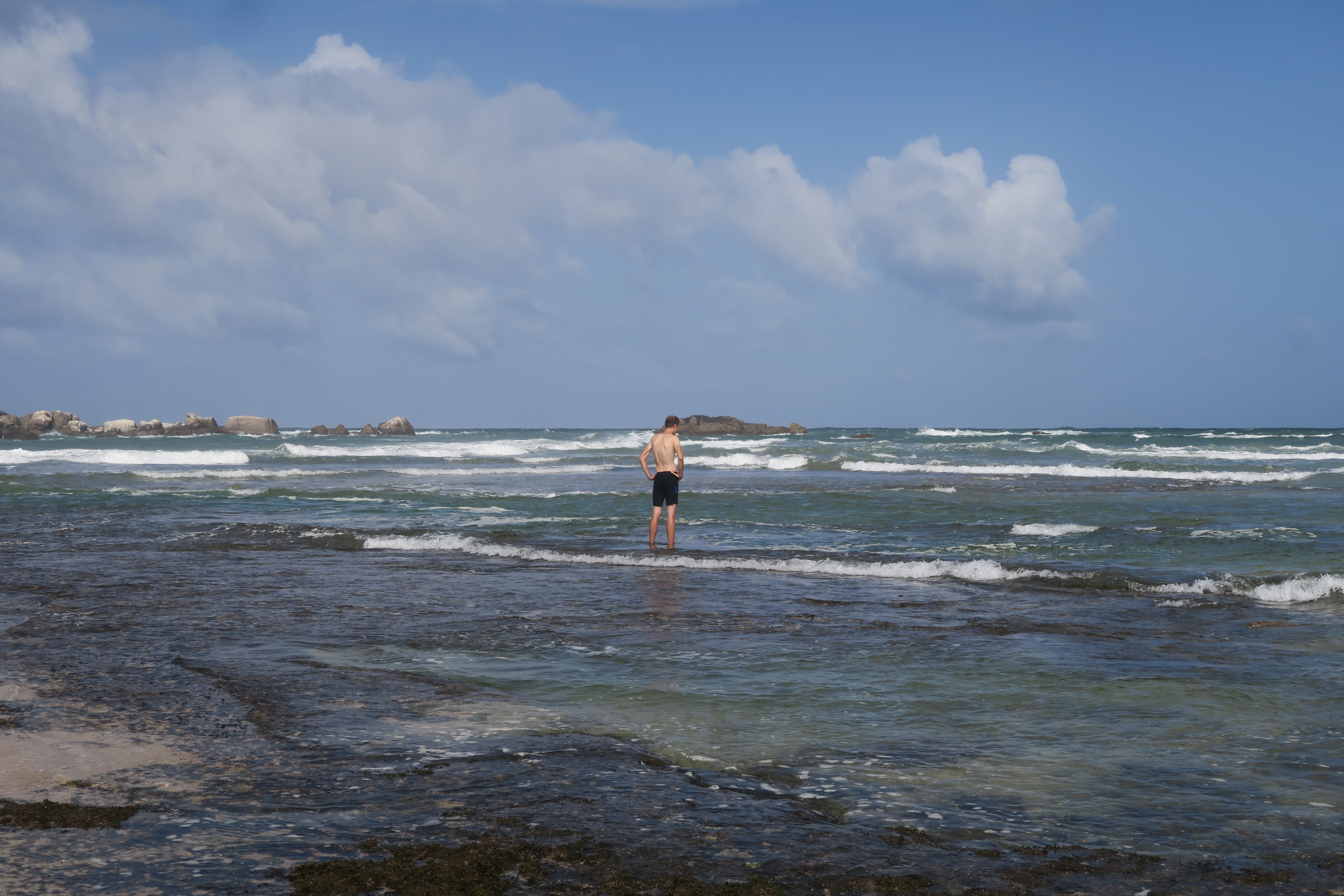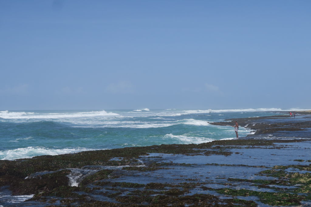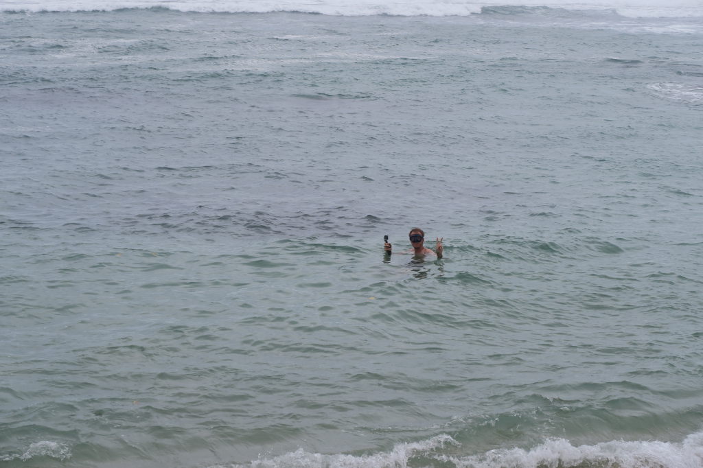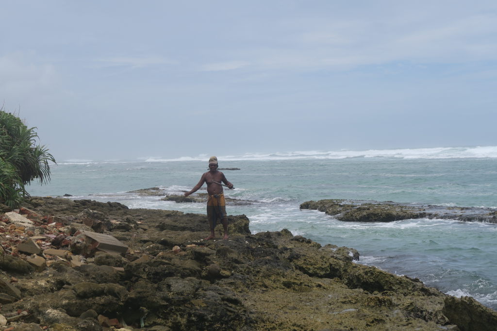 Julien, pieds nus sur les récifs, à la recherche des tortues