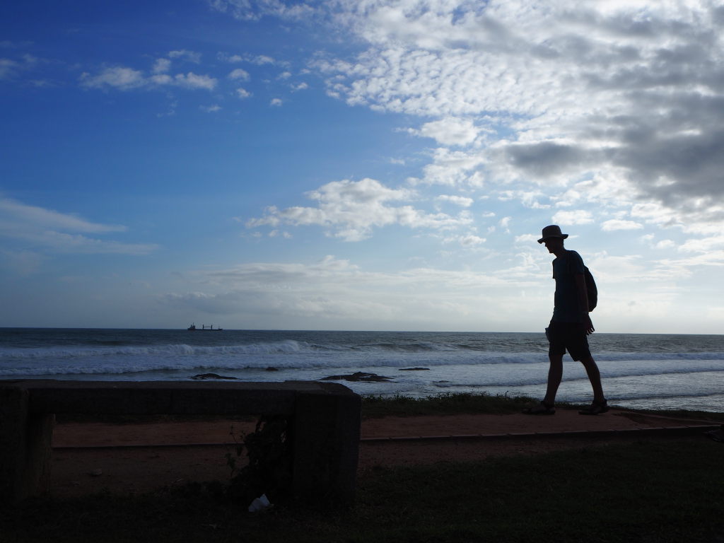 Julien marchant au loin sur la plage