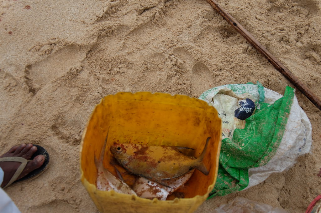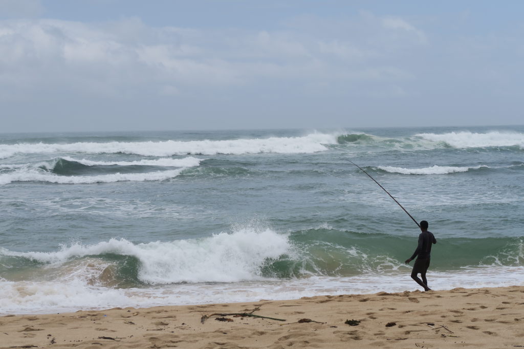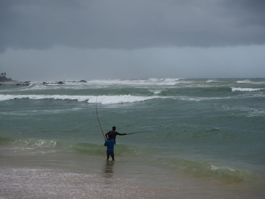 Pêcheurs à la ligne, sur la plage