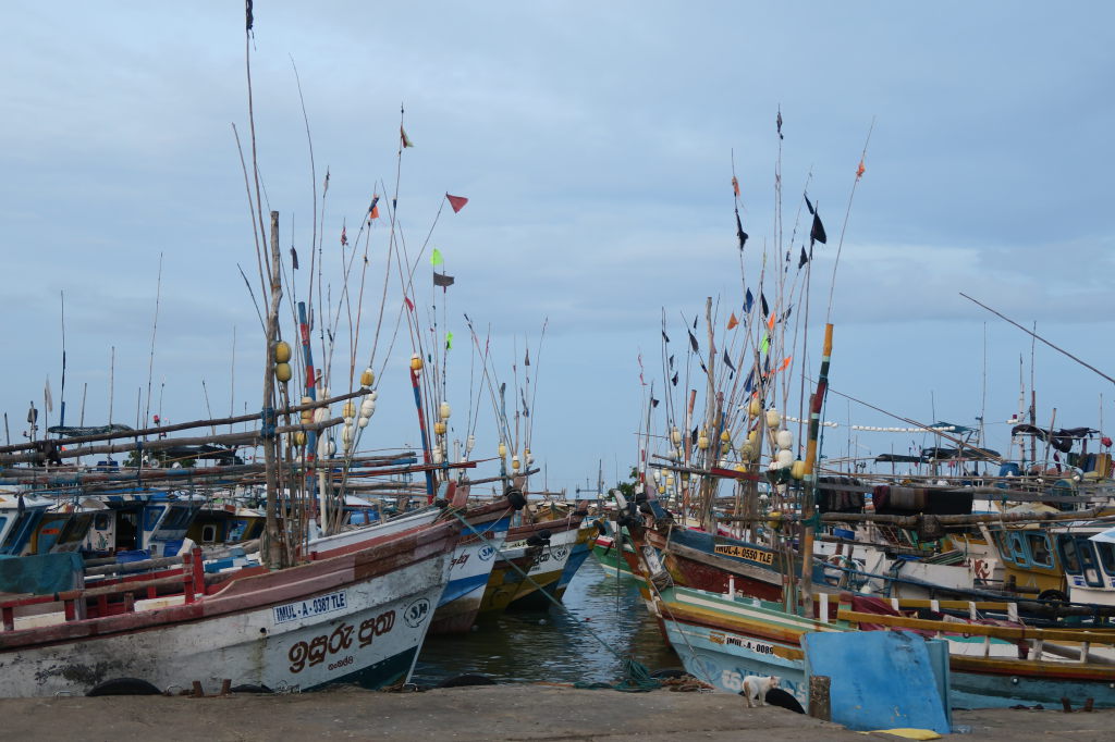 Coucher de soleil dans le port de Mirissa