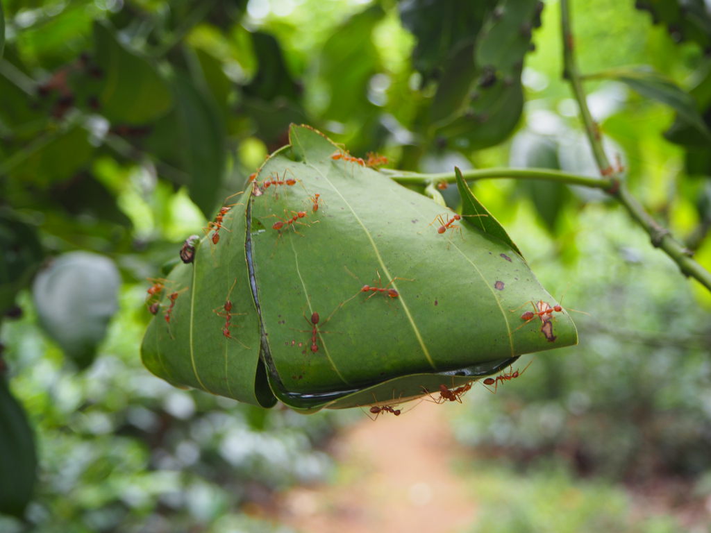 Nids de fourmis arboricoles, dans un cannelier de la plantation de thé