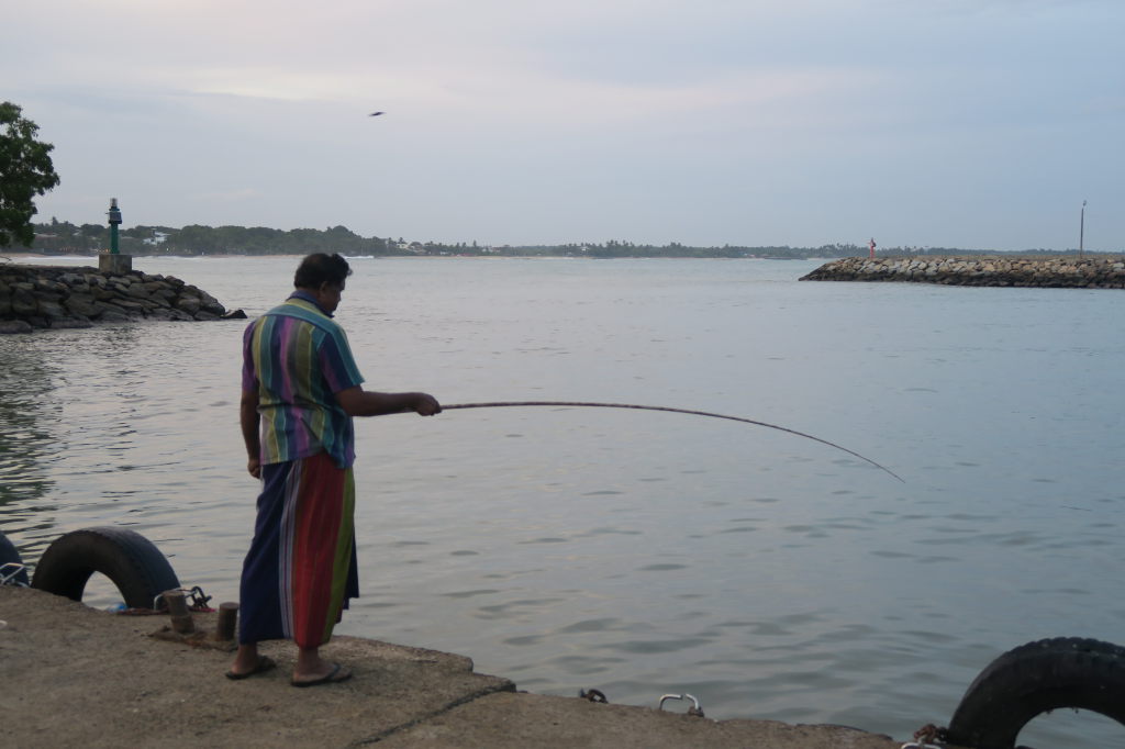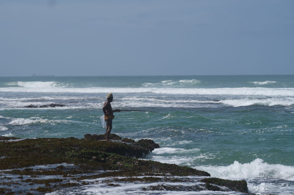Un pécheur dans le port de Mirissa