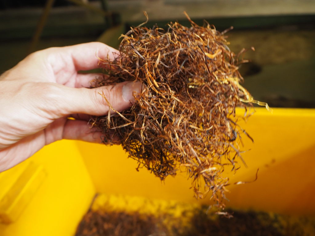 Résidus de feuilles séchées à haute température