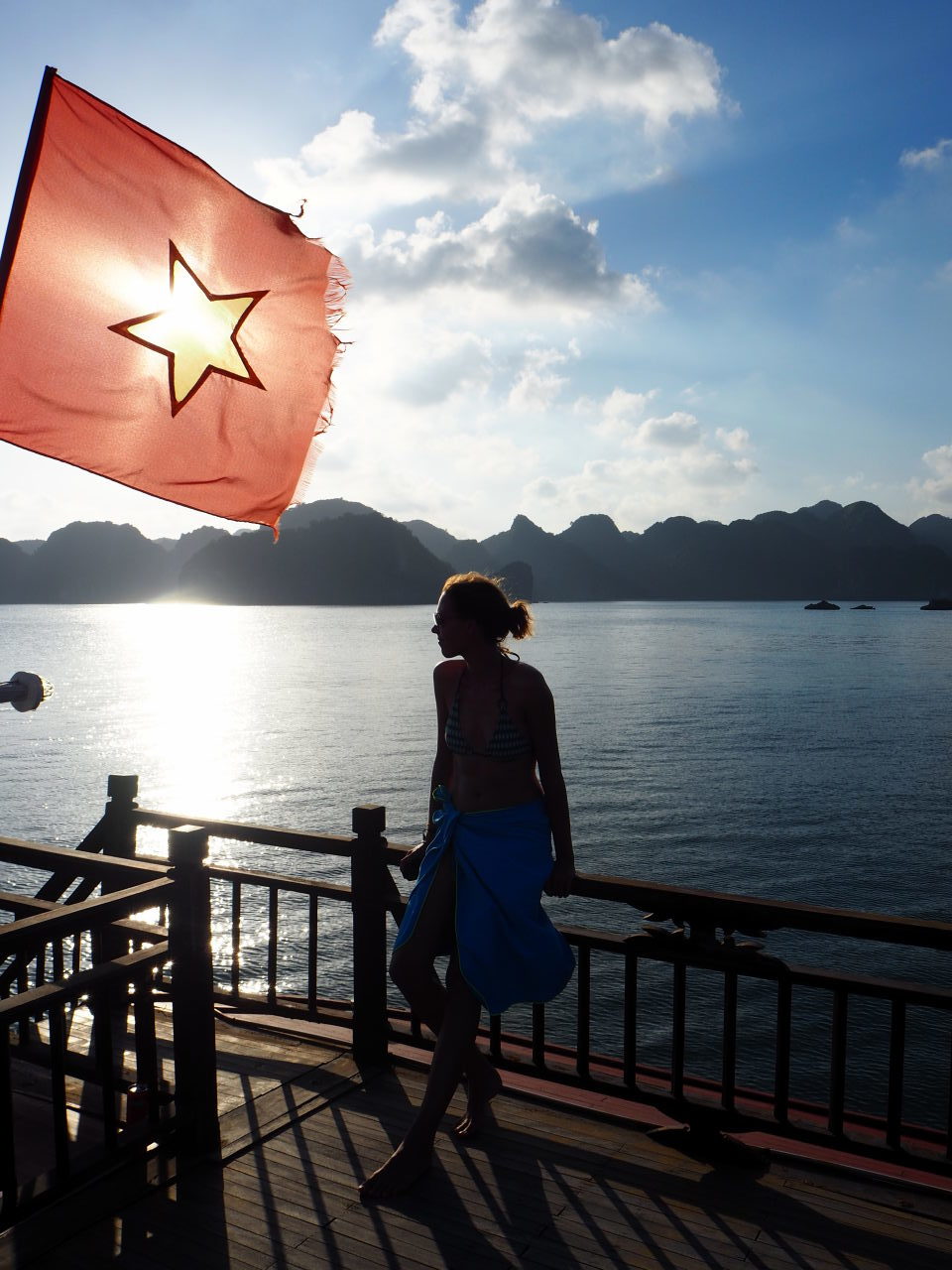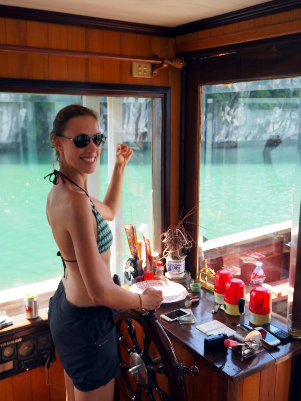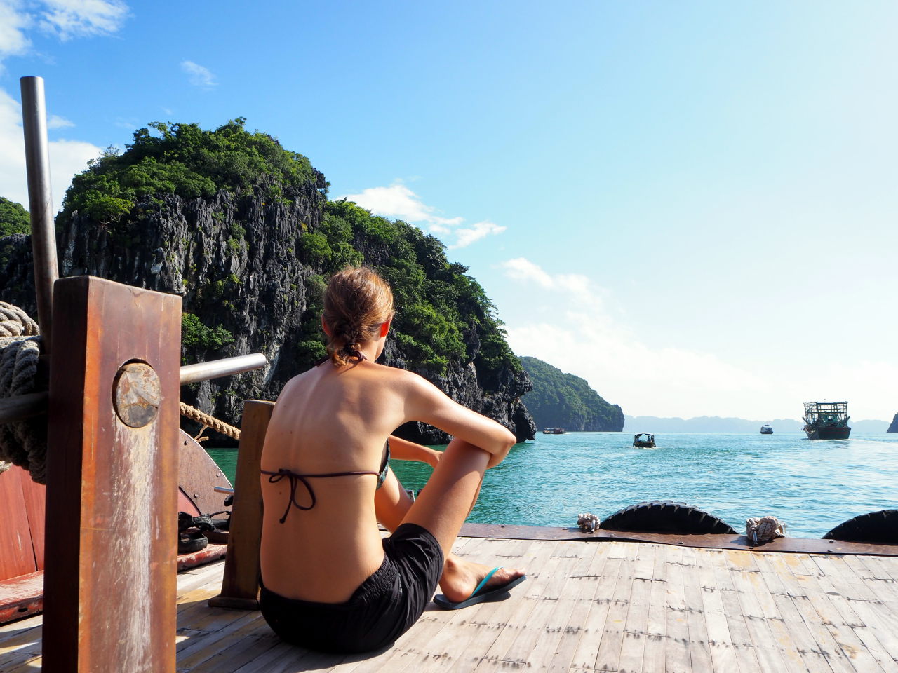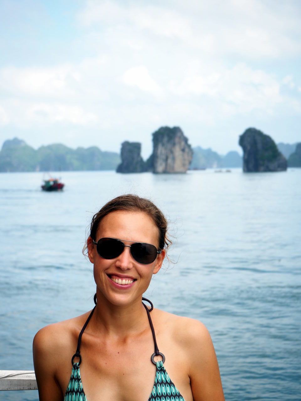 Elise sur le pont de notre bateau de croisière