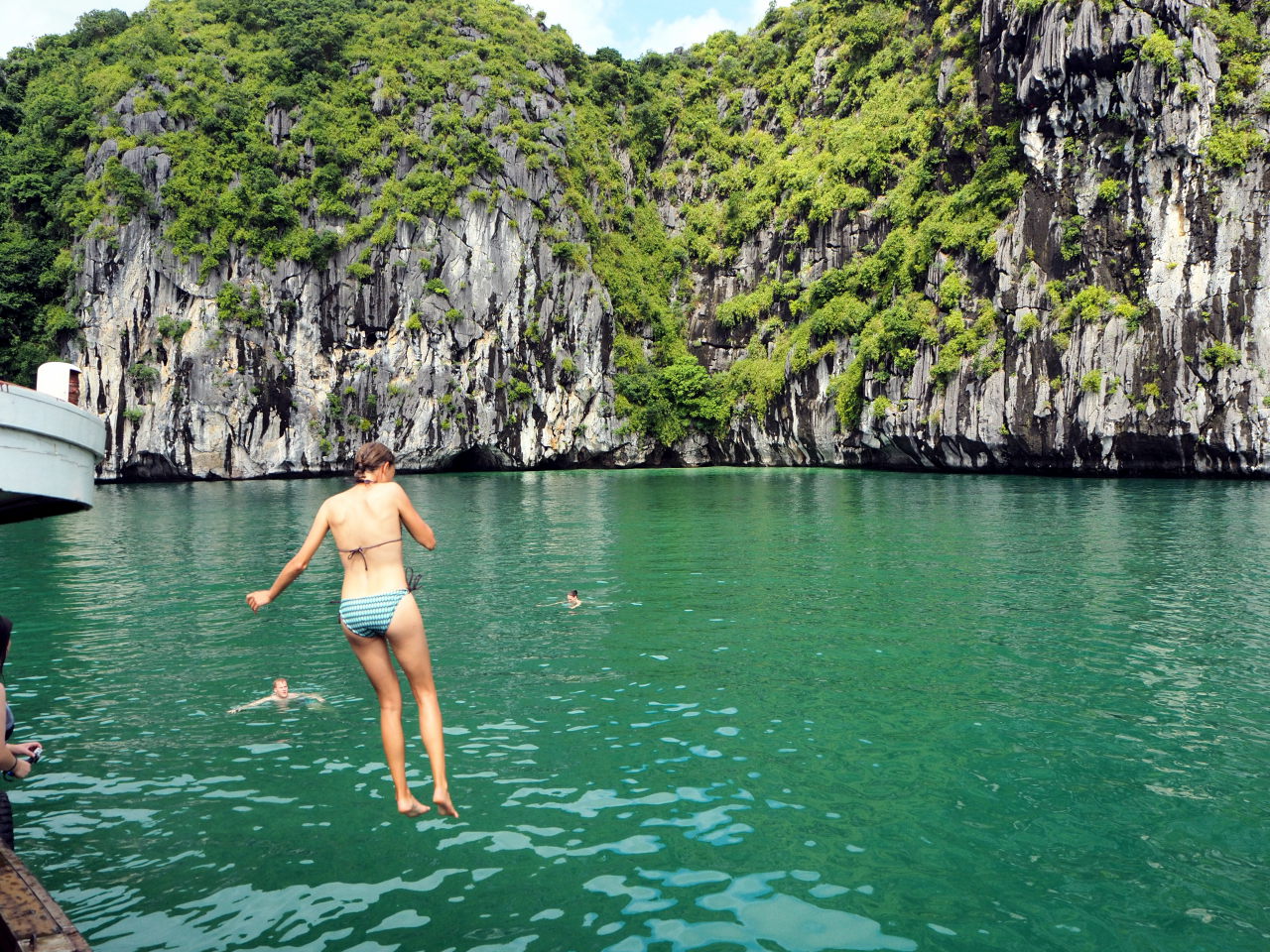 Elise prend son courage à deux mains et saute depuis le deck !