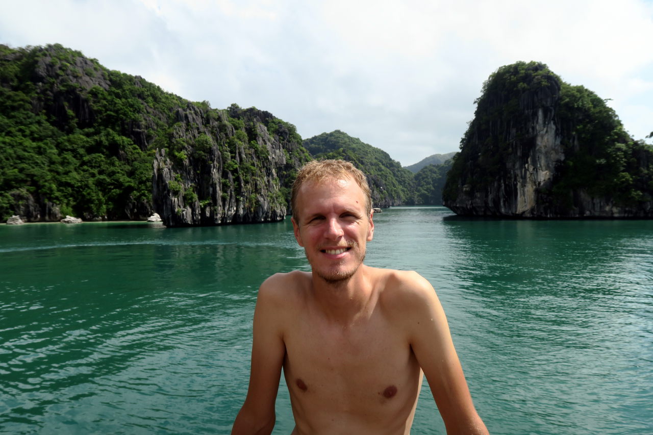 Julien sur le pont supérieur du bateau de croisière