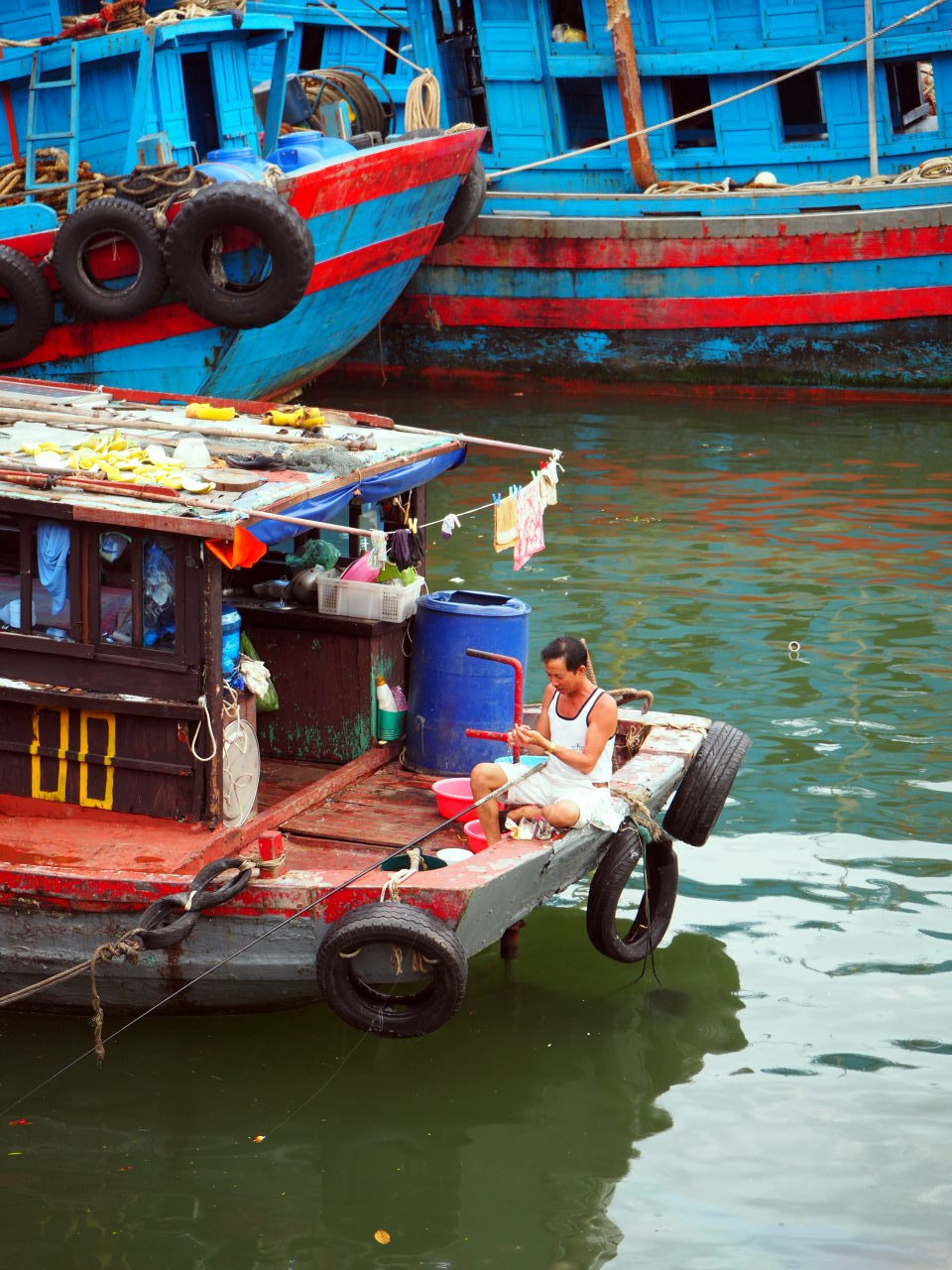 La vie sur les bateaux du port