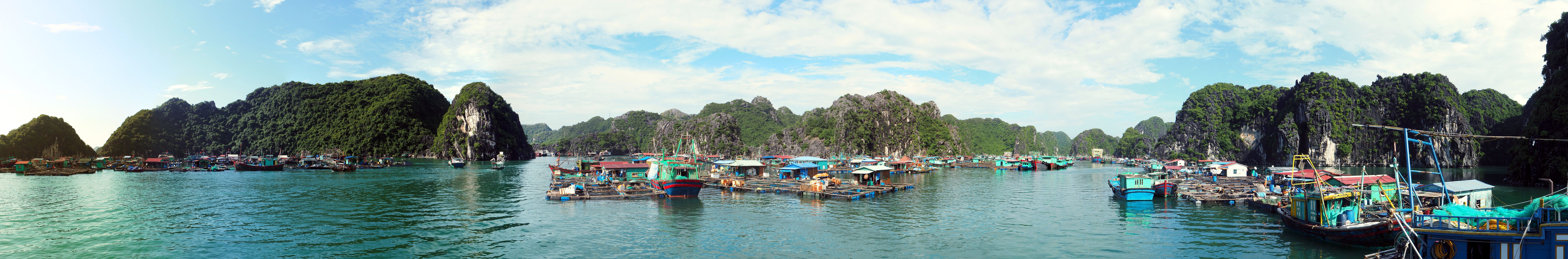 Panorama des maisons flottantes dans la baie