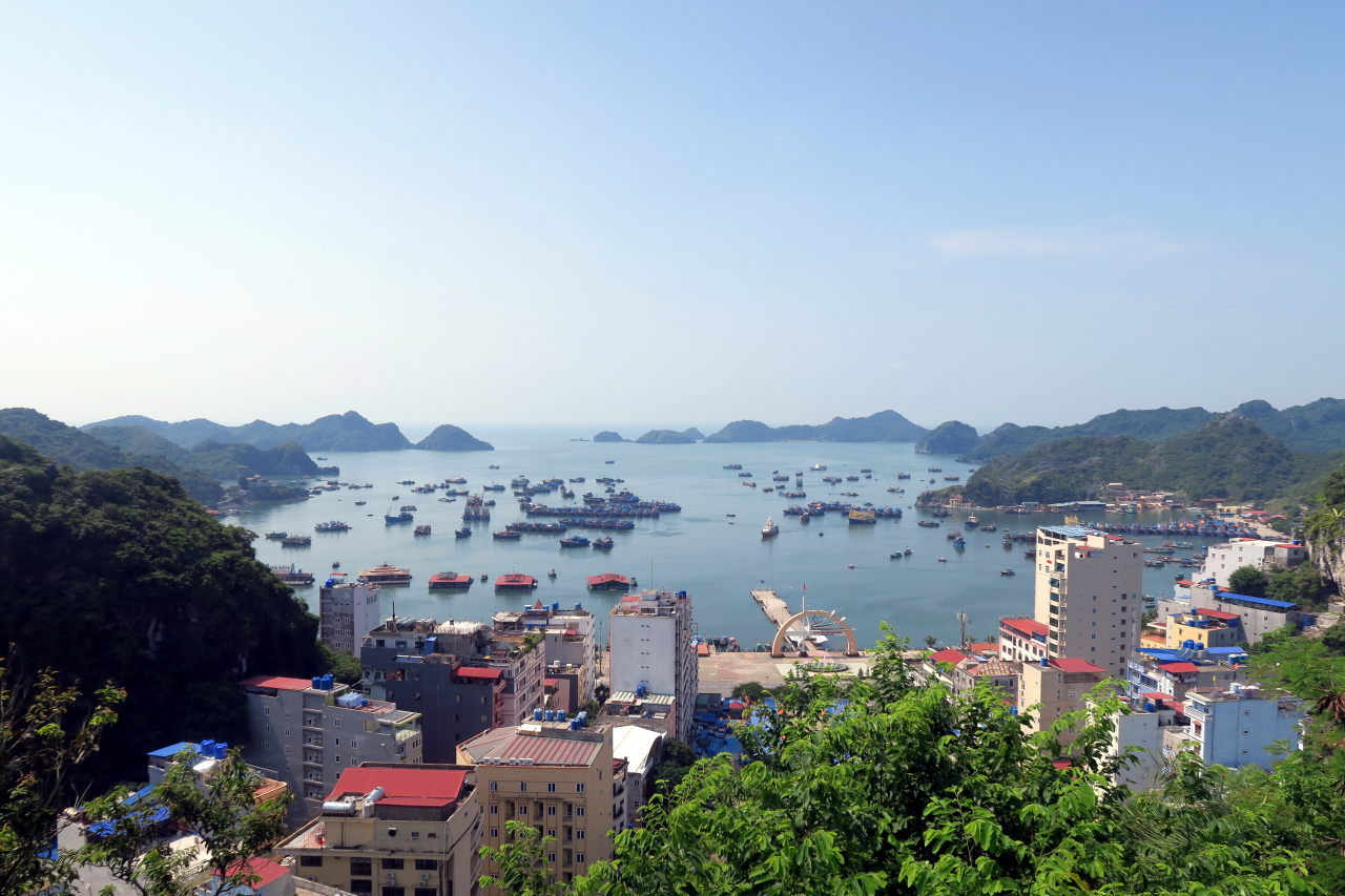 Vue de l’autre coté, sur la ville de Cat Ba et le port de pêche